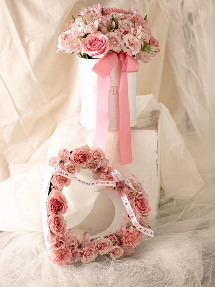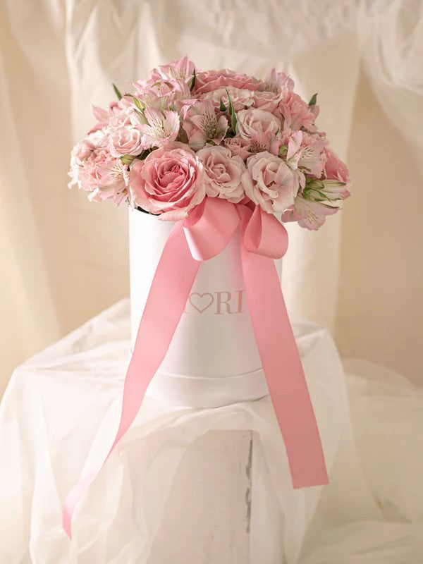 BOX CON FLORES Y ROSAS EN TONOS ROSADOS