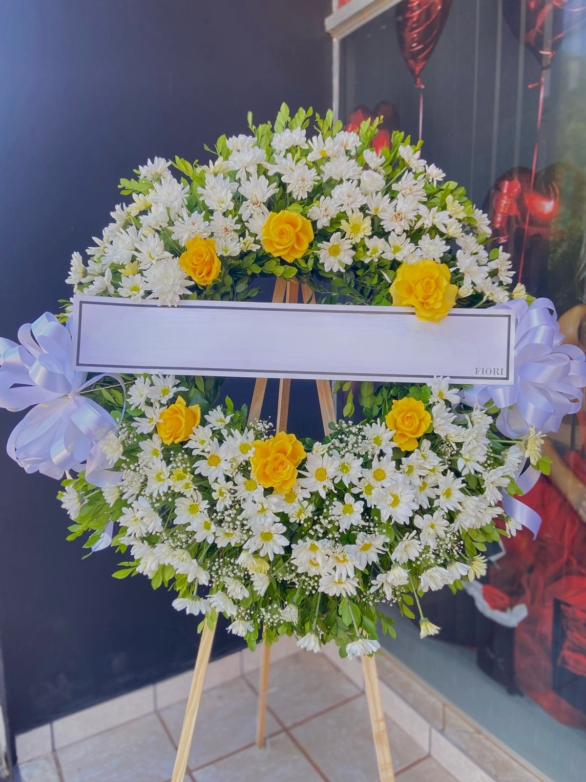 ROSAS AMARILLAS Y MARGARITAS BLANCAS MAS GIPSOFILA.