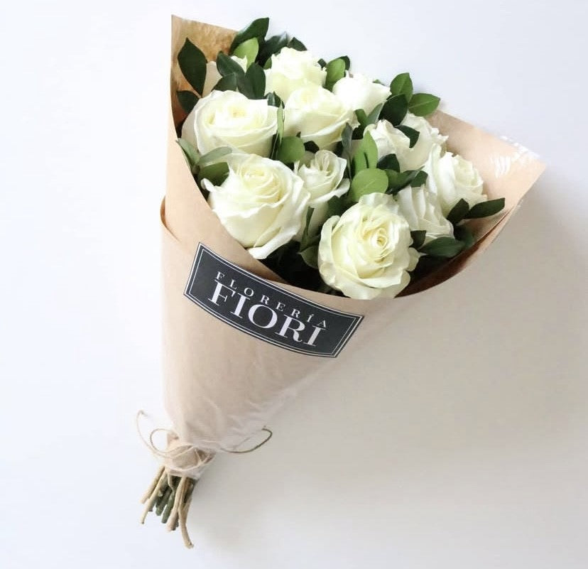RAWHITE. 12 ROSAS BLANCAS ENVUELTO EN PAPEL MADERA)
