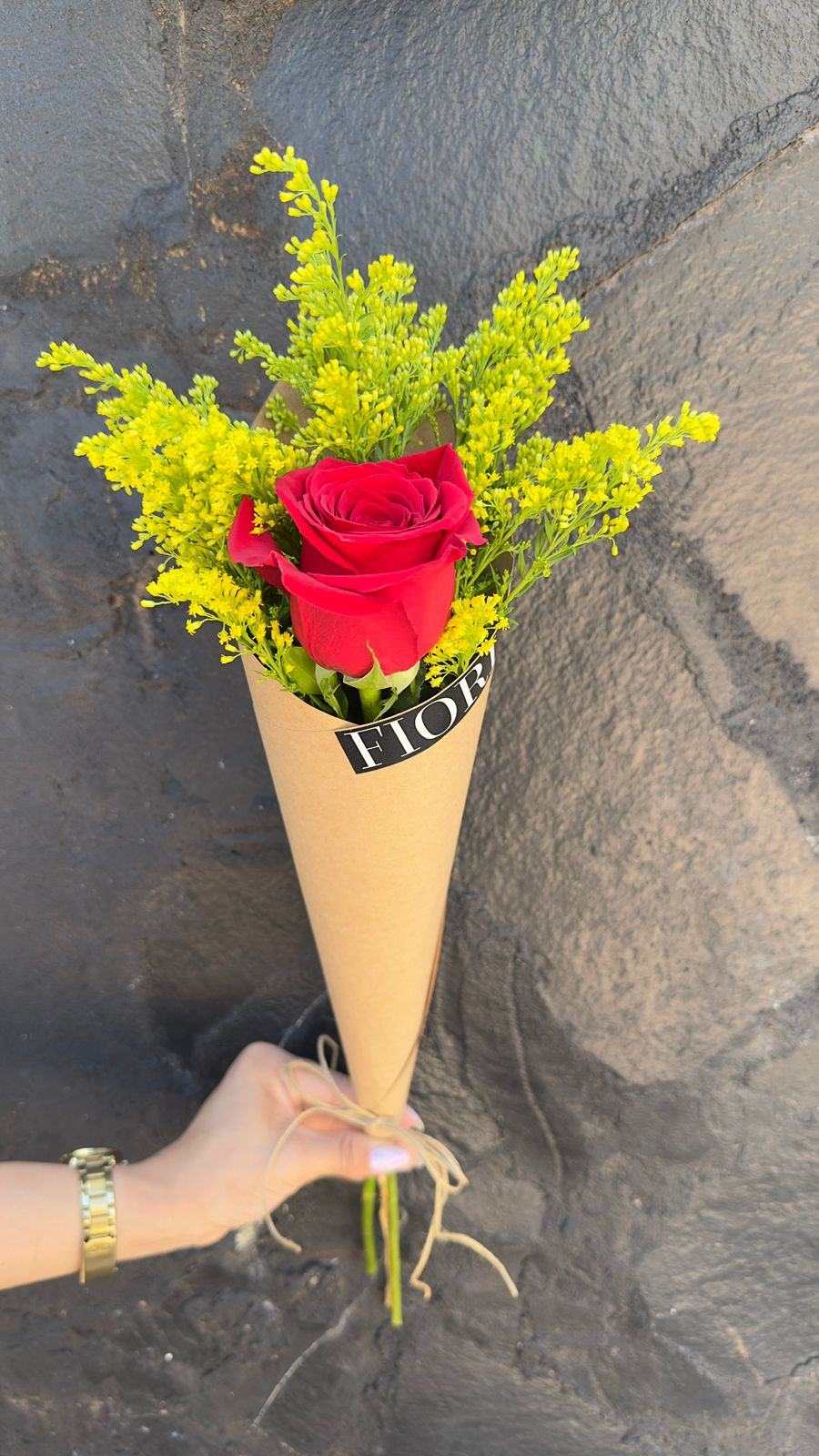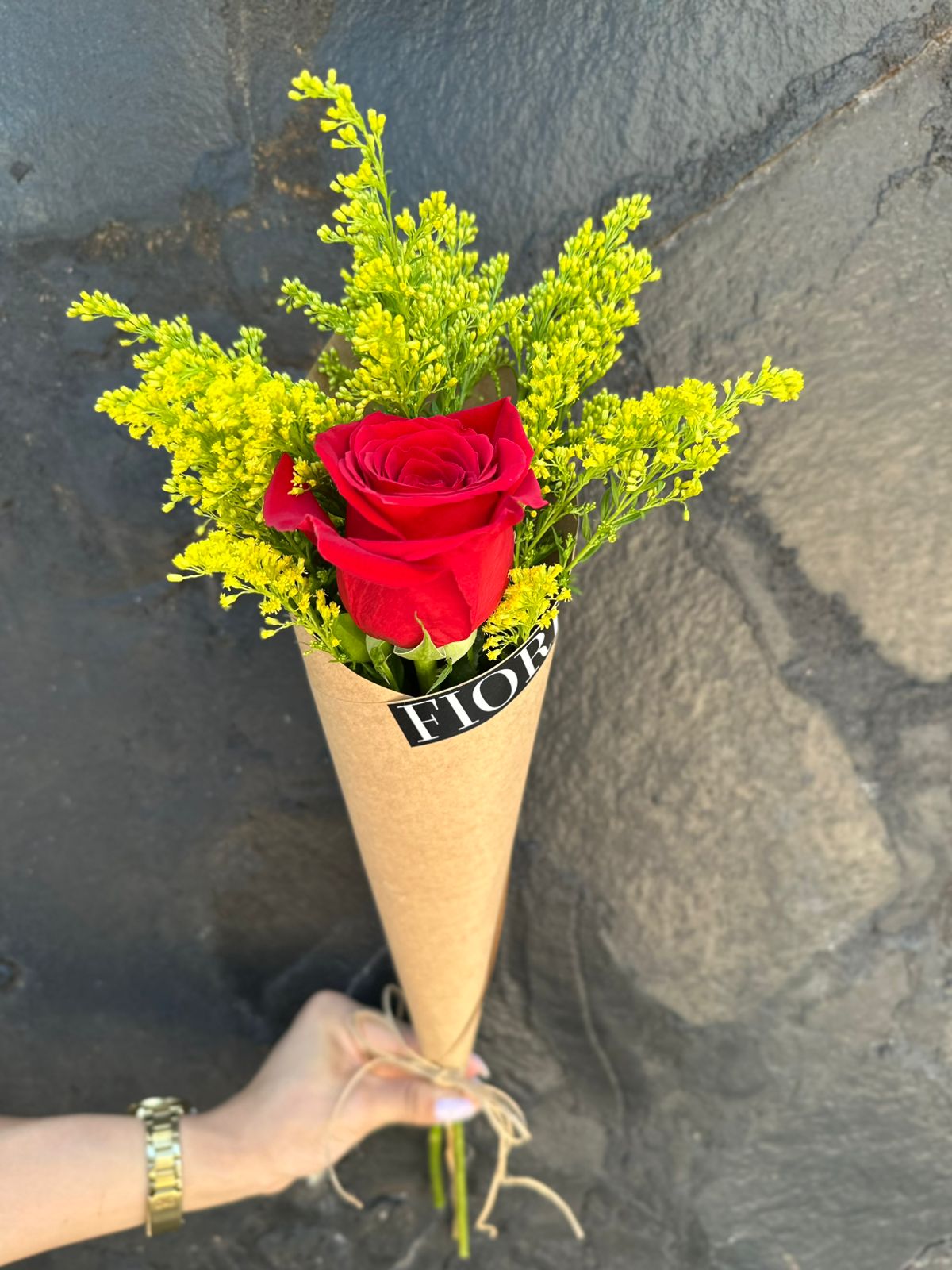 rosa envuelto en kraft.