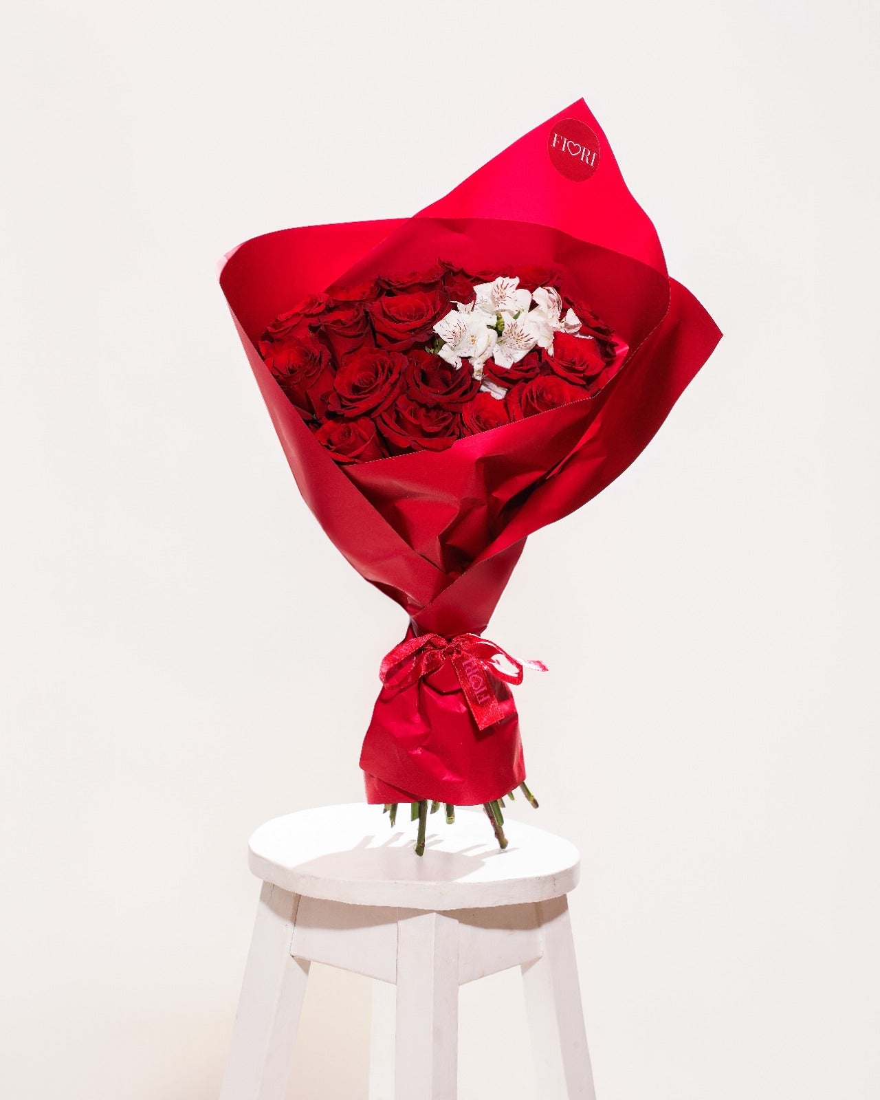 ROSAS ROJAS MÁS ASTROMELIAS O LIRIO