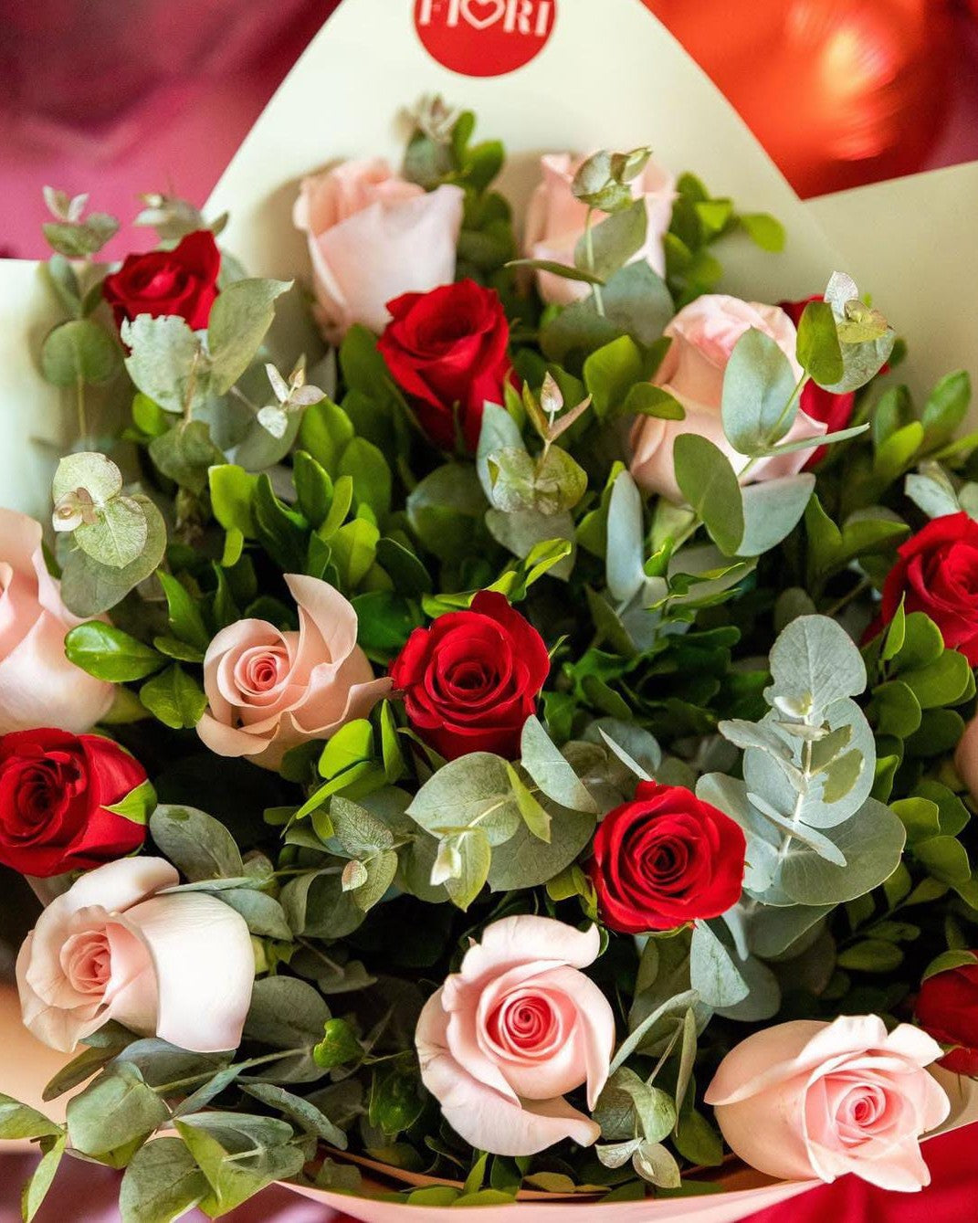 ROSAS ROSADAS Y ROJAS MAS EUCALIPTO