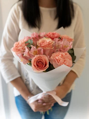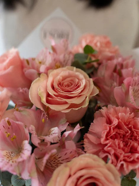 RAMO CON MIX DE ROSAS, CLAVELES Y ASTROMELIAS EN ROSADO
