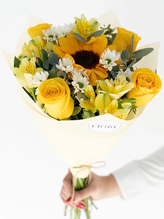 ROSAS AMARILLAS, MARGARITAS Y GIRASOL EN EL CENTRO