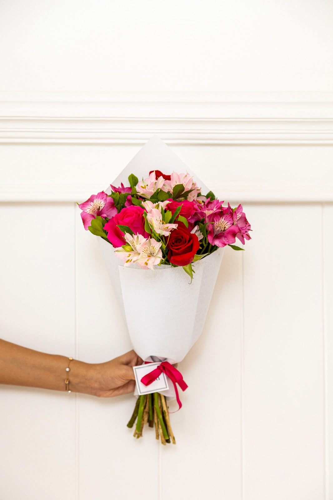 - Para que las flores te duren más, podés sacarlas de su envoltorio y colócalas en un jarrón con agua. Cambiales agua cada dos días y aprovecha para cortarle los tallos de 1 a 2 cm.